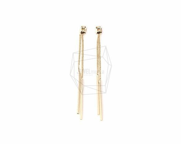 ERG-141-G/4pcs/Double Sticks With Chains Earrings Back Component/7mm x 70mm/Gold Plated Over Brass