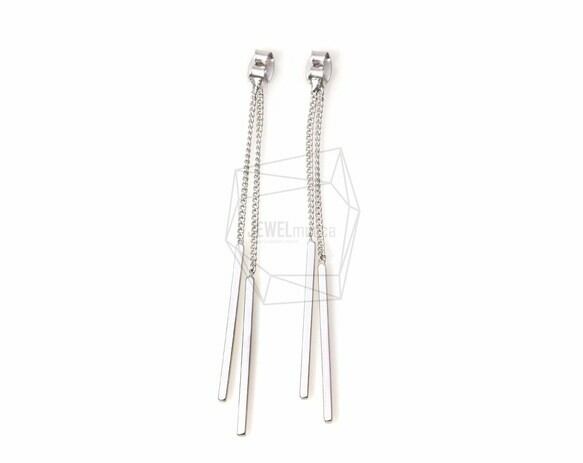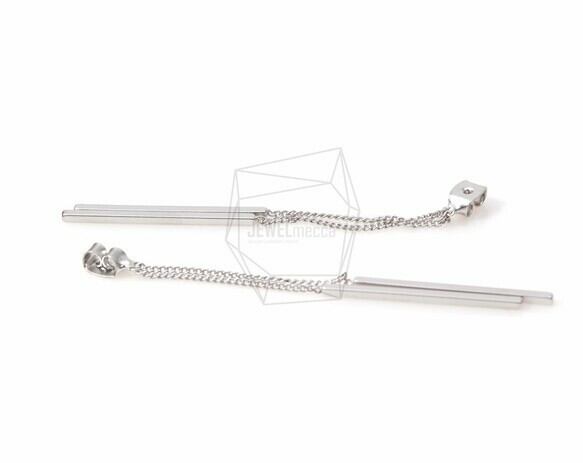 ERG-141-MR/4pcs/Double Sticks With Chains Earrings Back Component/7mm x 70mm/Matte Rhodium Plated Over Brass