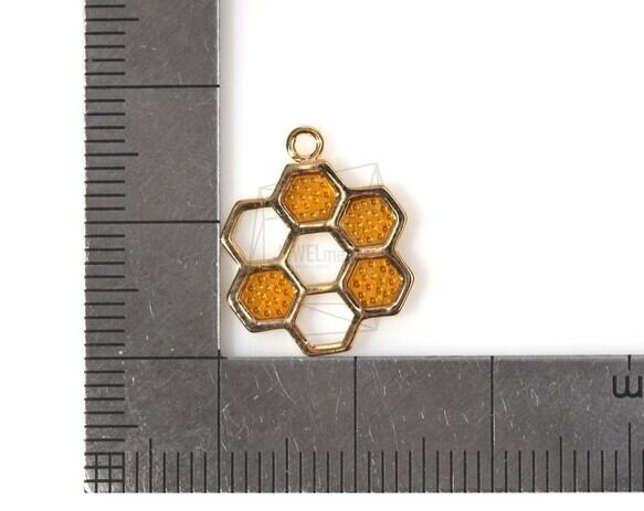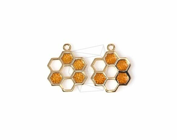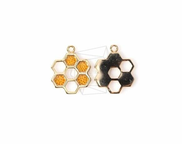 PDT-820-G/2PCS/Honey Comb Flower Pendant/14mm x 14mm/Gold Plated Over Brass