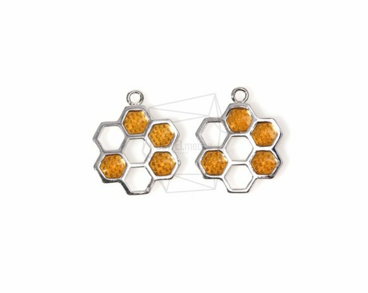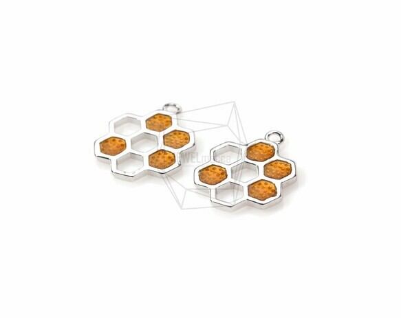 PDT-820-R/2PCS/Honey Comb Flower Pendant/14mm x 14mm/Rhodium Plated over Brass