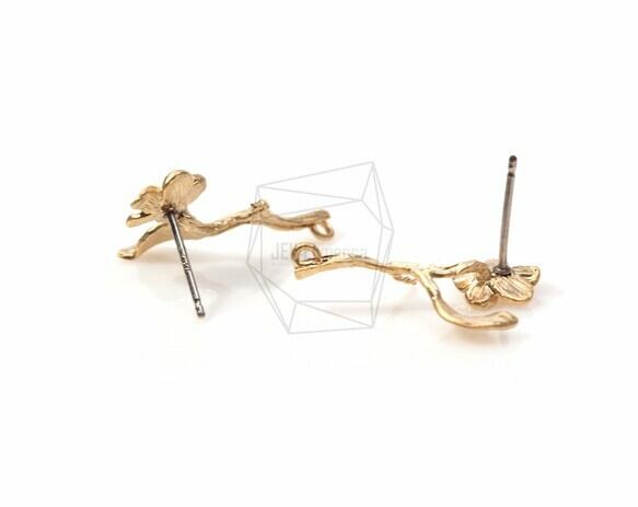 ERG-221-MG/2Pcs-Flower Branch Ear Post/ 15mm x 22mm /Matte Gold Plated over Brass/925 sterling silver post