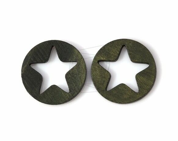 BSC-117-G/4pcs/Star in circle Wooden Beads /30mm x 30mm