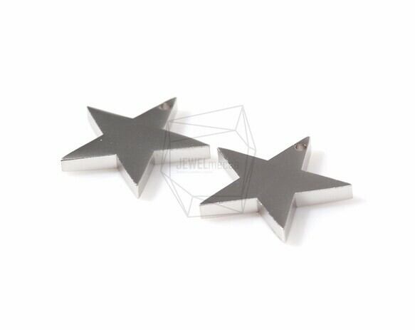 PDT-928-MR/2pcs/Star Pendant/23mm x 23mm/Matte Rhodium Plated Over Brass