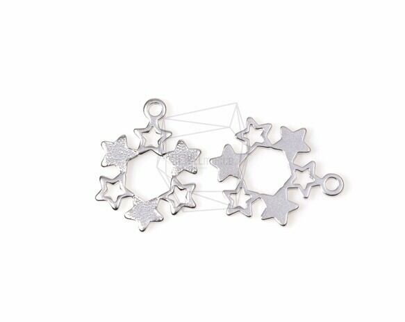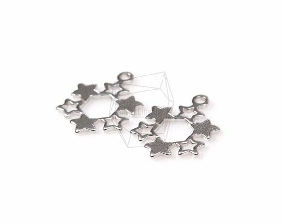 PDT-929-MR/2pcs/Round stars Pendant/15mm x 18mm/Matte Rhodium Plated Over Brass