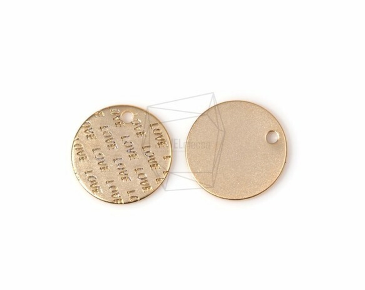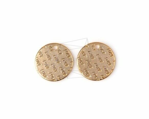 PDT-930-MG/4pcs/Love Letters round Pendant/15mm x 15mm/Matte Gold Plated Over Brass