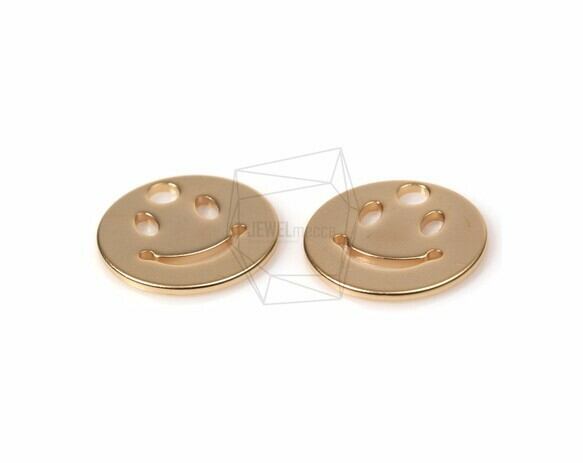 PDT-932-MG/2pcs/Round smile Pendant/15mm x 15mm/Matte Gold Plated Over Brass