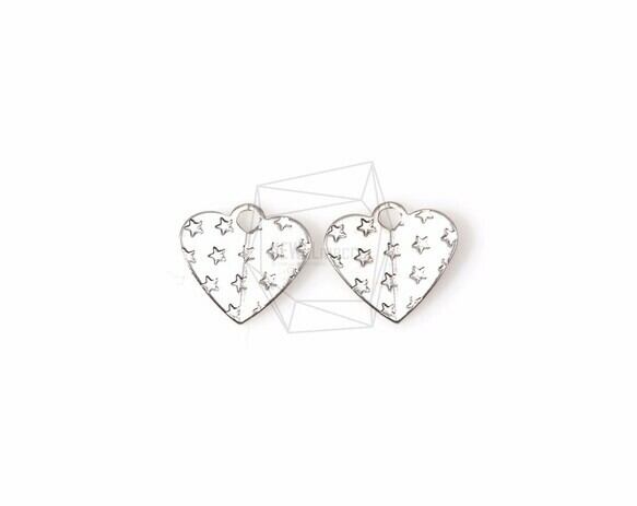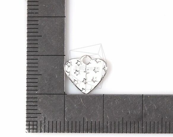 PDT-933-MR/4pcs/Stars in heart Pendant/10mm x 11mm/Matte Rhodium Plated Over Brass