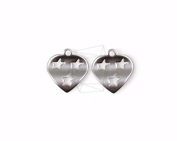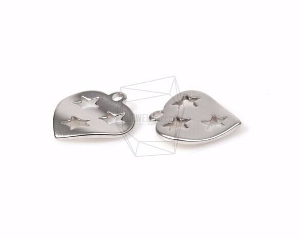 PDT-935-MR/4pcs/Stars in heart Pendant/15mm x 15mm/Matte Rhodium Plated Over Brass