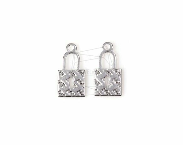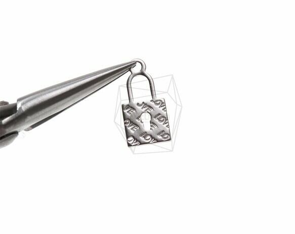 PDT-937-MR/4pcs/Love Letters Lock Pendant/8mm x 16mm/Matte Rhodium Plated Over Brass