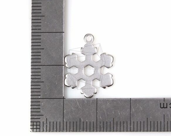 PDT-938-MR/4pcs/Snow Flower Pendant/ 15mm x 20mm/Matte Rhodium Plated Over Brass