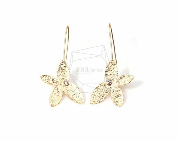ERG-234-MG/2PCS/Flower Hook Earring/Flower Earwire/ 24mm x 26mm/Matte Gold Plated over Brass