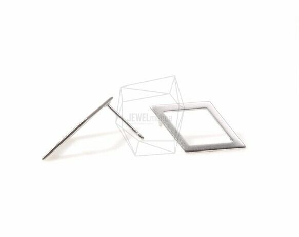 ERG-240-MR/4Pcs-Diamond Shape Ear Post/ 13mm x 22mm /Matte Rhodium Plated over Brass