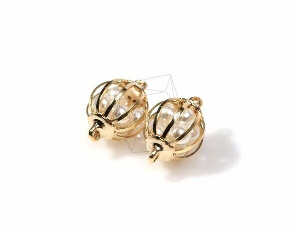 PDT-839-G/2Pcs-Pearls in cage Pendant/ 12mm x 18mm/Gold Plated Over Brass