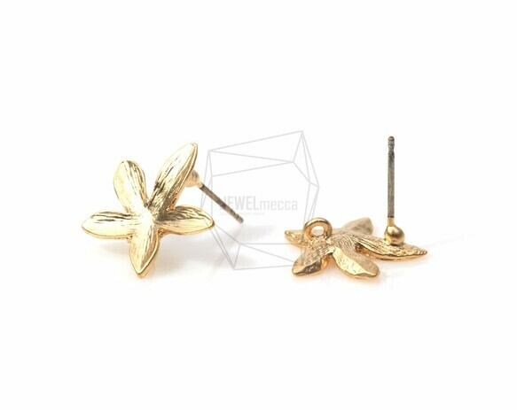 ERG-249-MG/2Pcs-Flower Ear Post/ 15mm x 15mm /Matte Gold Plated over Brass/925 sterling silver post