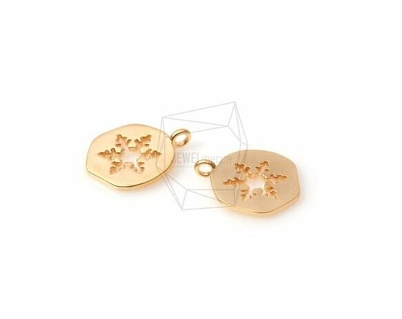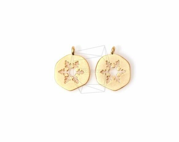 PDT-865-MG/2Pcs-Winter Christmas Snowflake Pendant/ 12mm x 14mm/Matte Gold Plated Over Brass