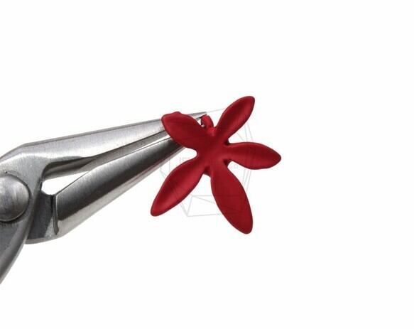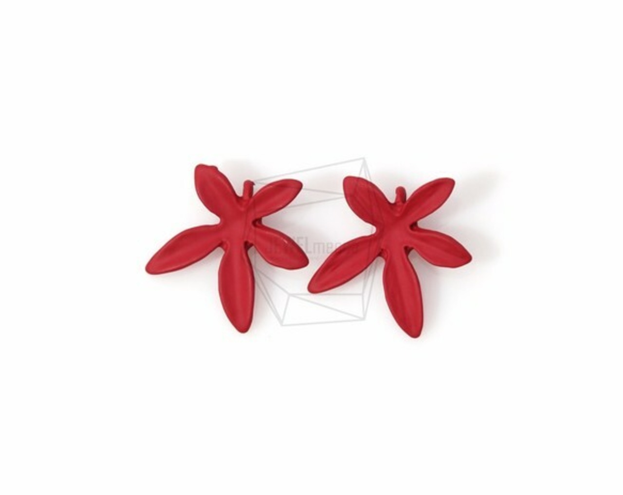 PDT-876-MG/2Pcs-Red Color flower Pendant/ 15mm x 17mm /Plated over Pewter