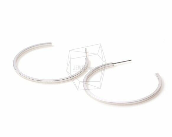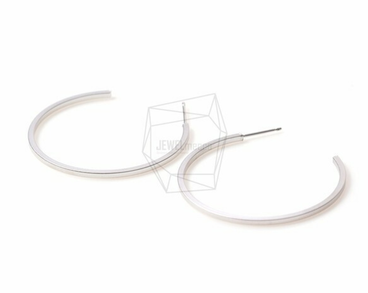 ERG-309-MR/2Pcs-Round Ear Post/ 40mm x 40mm /Matte Rhodium Plated over Brass