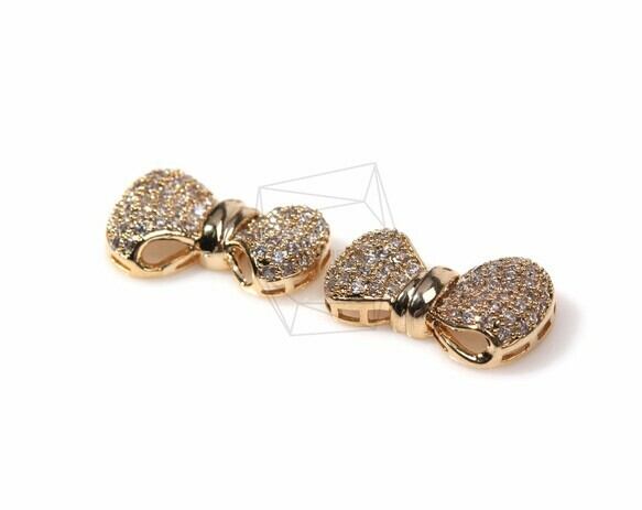 PDT-887-G/1pcs/Ribbon Charm With CZ/ 15mm x 25mm/Gold Plated Over Brass