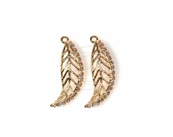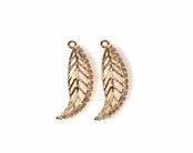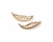 PDT-897-G/2Pcs-Leaf Pendant/ 10mm x 25mm/Gold Plated Over Brass