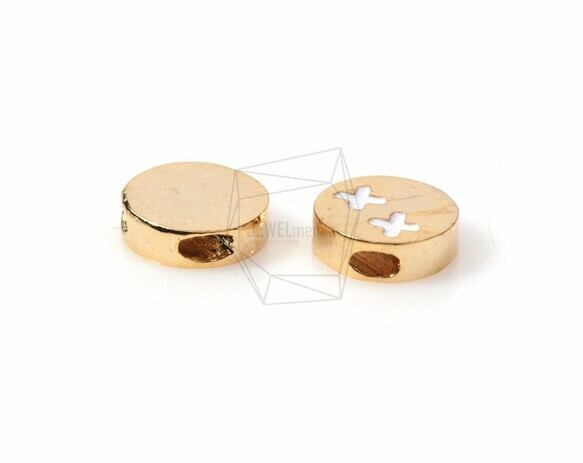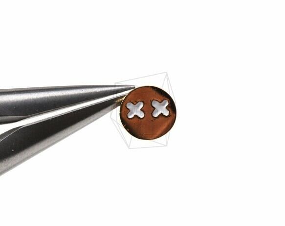PDT-900-G/2Pcs-White Epoxy X Round Pendant/ 8mmX8mm /Gold Plated over brass