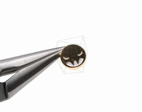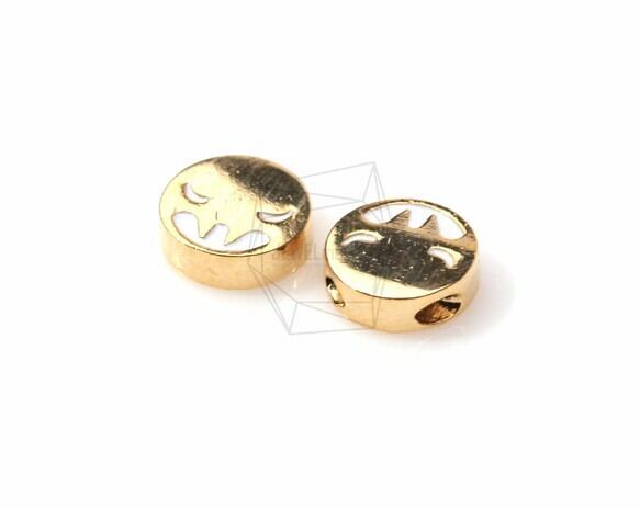 PDT-903-G/2Pcs-White Epoxy Face Round Pendant/ 8mmX8mm /Gold Plated over brass