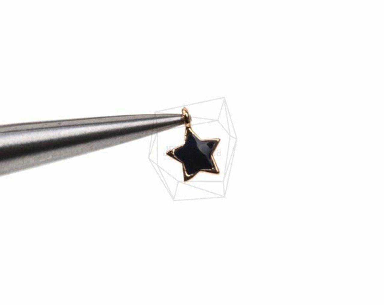 PDT-905-G/2Pcs-Black Epoxy star Pendant/ 6mmX7mm /Gold Plated over brass