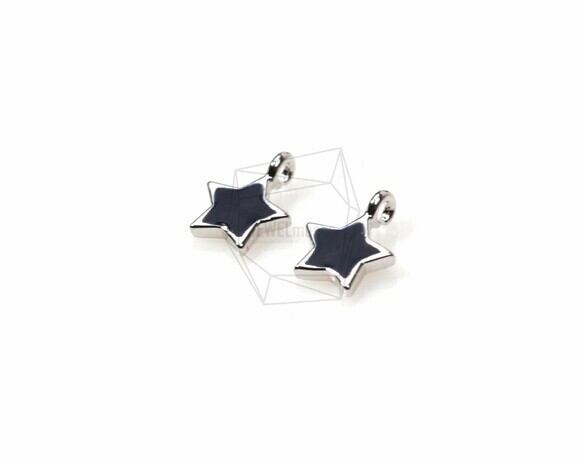 PDT-905-R/2Pcs-Black Epoxy star Pendant/ 6mmX7mm /Rhodium Plated over brass