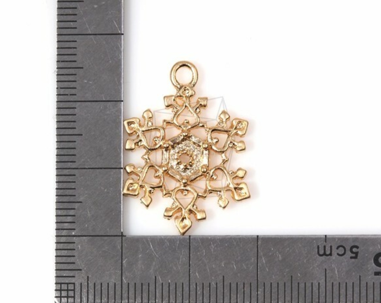 PDT-907-MG/4Pcs-Snowflake Pendant/ 20mm x 25mm/ Matte Gold Plated Over Pewter