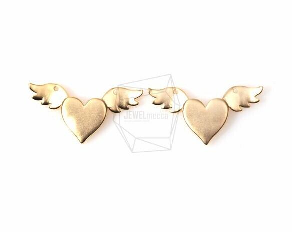 CNT-120-MG/2PCS/Winged Heart Pendant/20mm x 10mm/Matte Gold Plated Over Brass