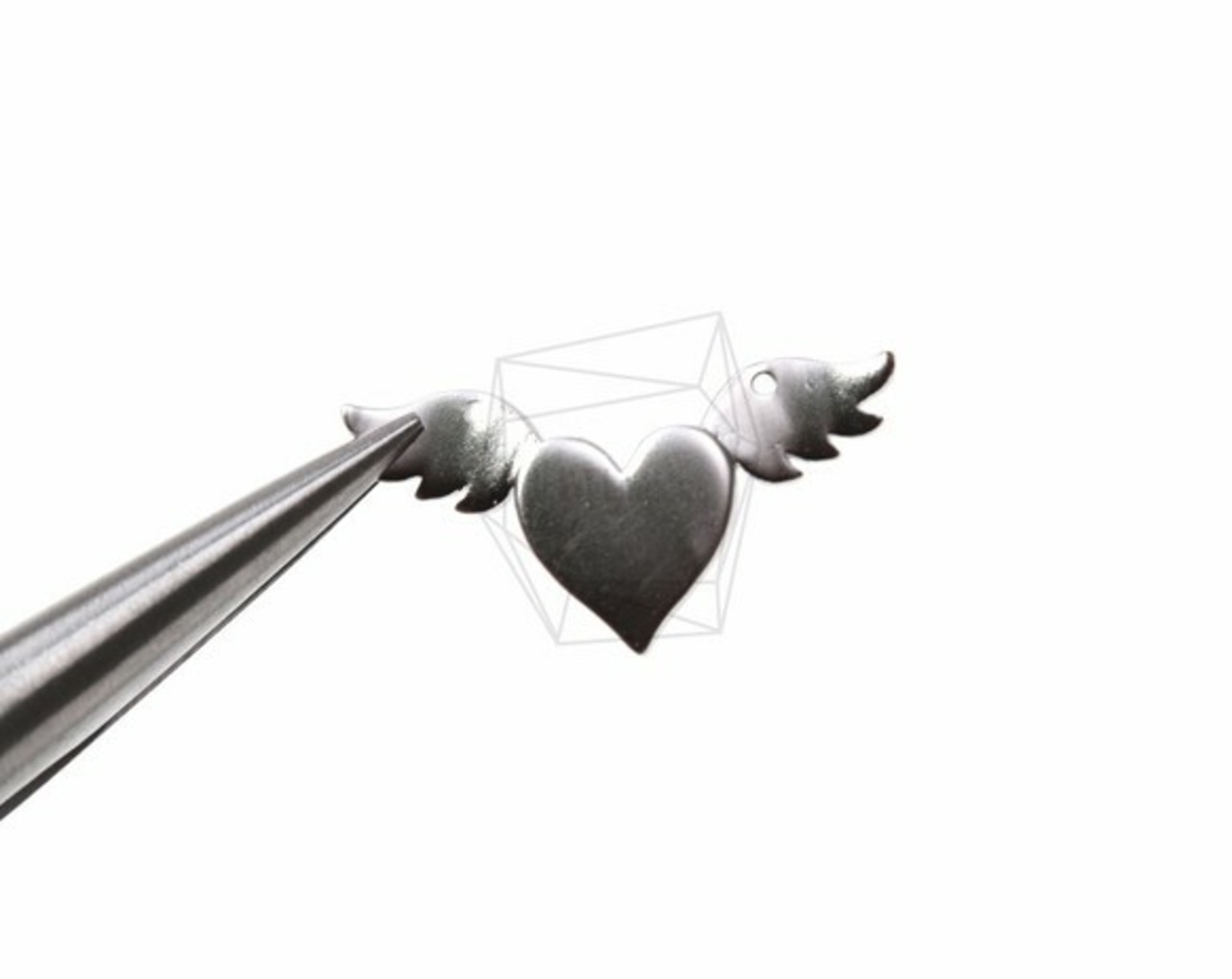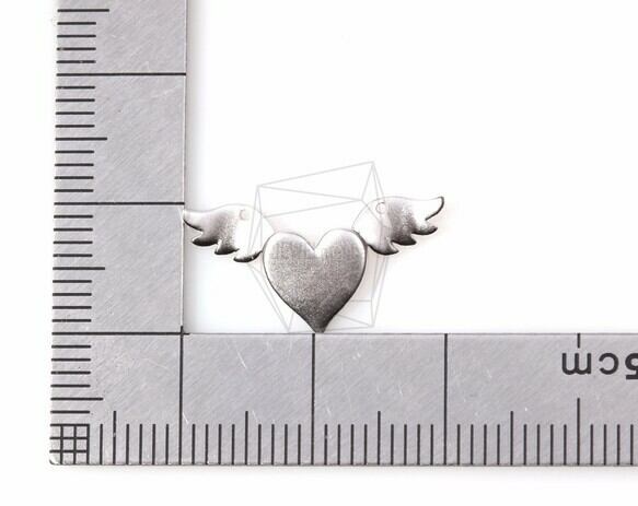 CNT-120-MR/2PCS/Winged Heart Pendant/20mm x 10mm/Rhodium Plated Over Brass