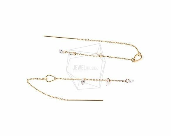 ERG-304-G/2PCS/Heart Drop Chain Earring/14cm/Gold Plated Over Brass