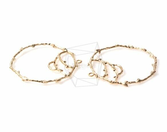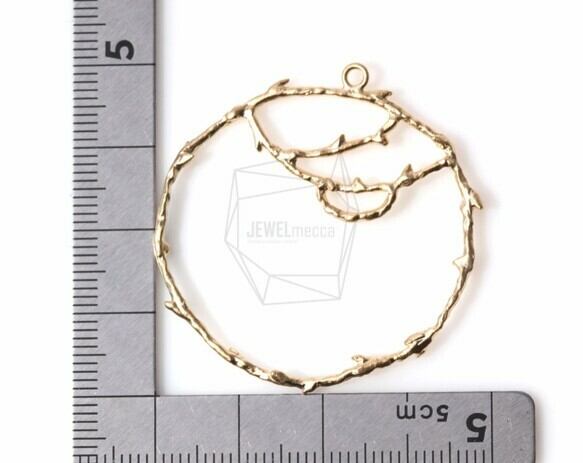 PDT-965-MG/2PCS/Branch Circle Pendant/38mm x 38mm/Matte Gold Plated Over Brass