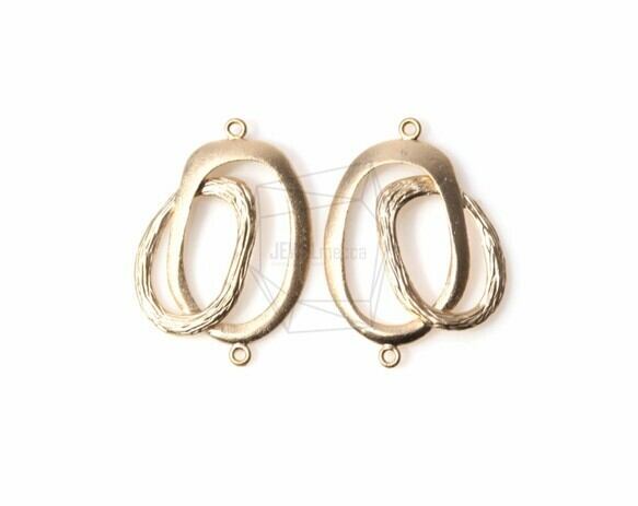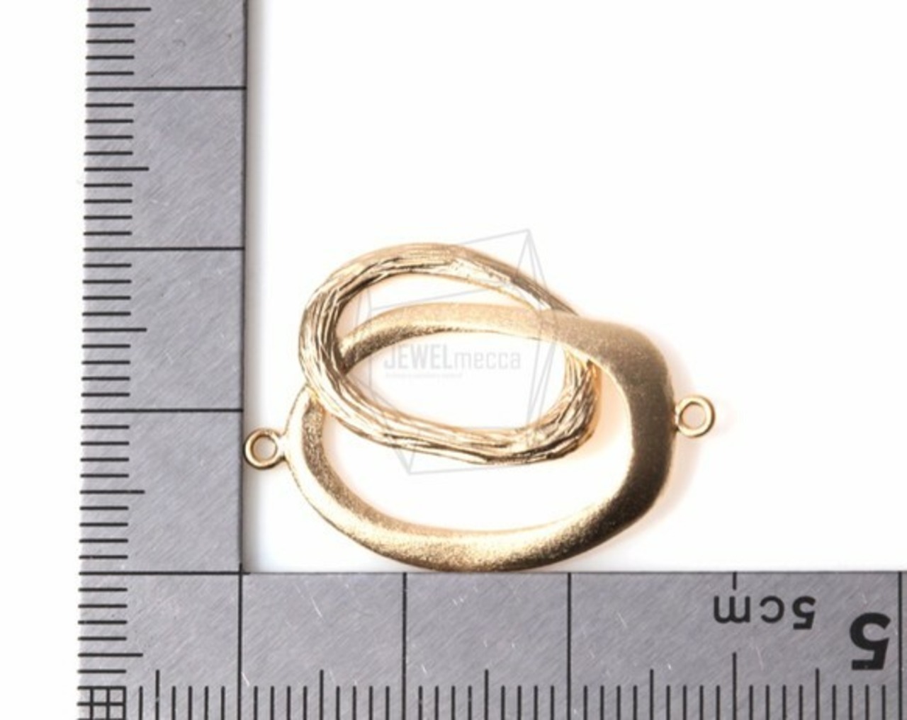 PDT-969-MG/2PCS/Textured Link Pendant/28mm x 20mm/Matte Gold Plated Over Brass