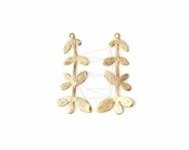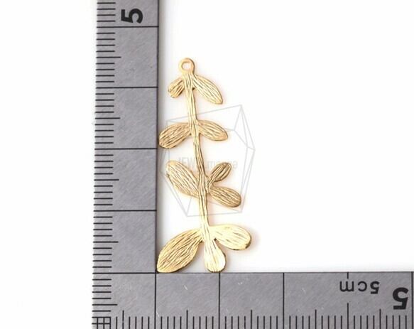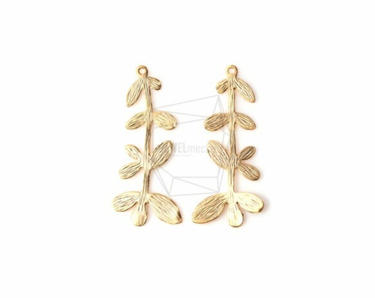 PDT-970-MG/2PCS/Textured Leaves Bar/15mm x 42mm/Matte Gold Plated Over Brass