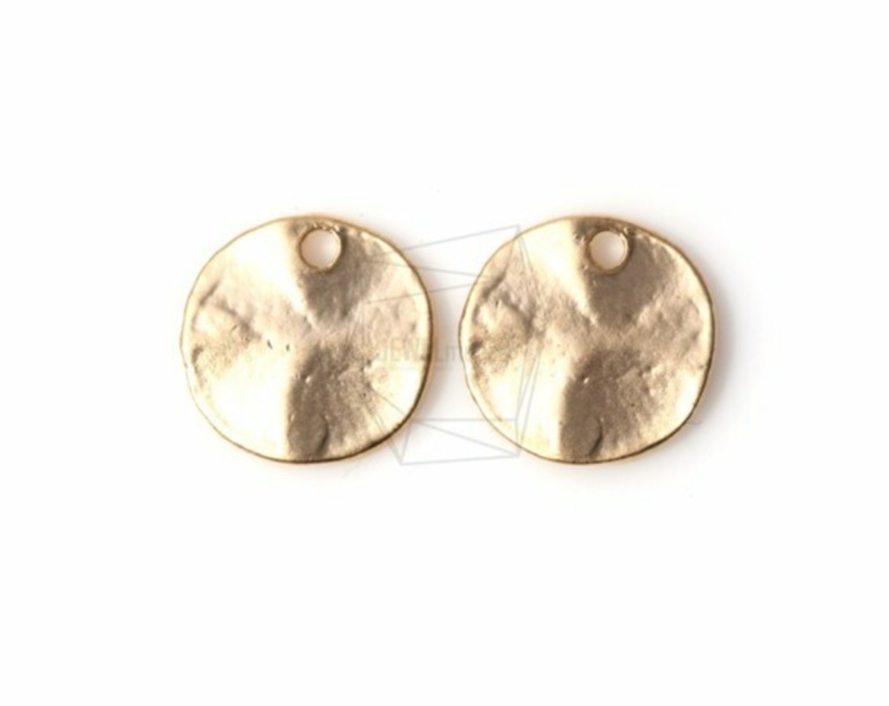 PDT-982-MG/4PCS/Hammered Round Pendant/15mm x 15mm/Matte Gold Plated Over Brass