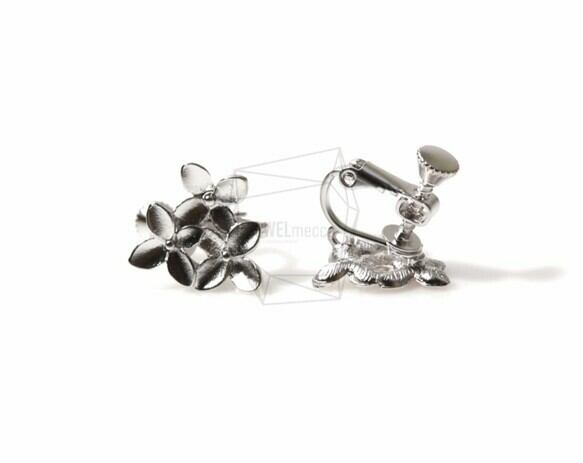 ERG-315-MR/2PCS/No Piercing Flower Cluster Earring/15mm x 18mm/Matte Rhodium Plated over Brass