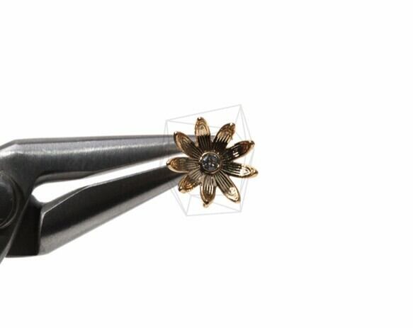 ERG-326-G/2PCS/CZ Sunflower Earring/10mm x 10mm/Gold Plated over Brass
