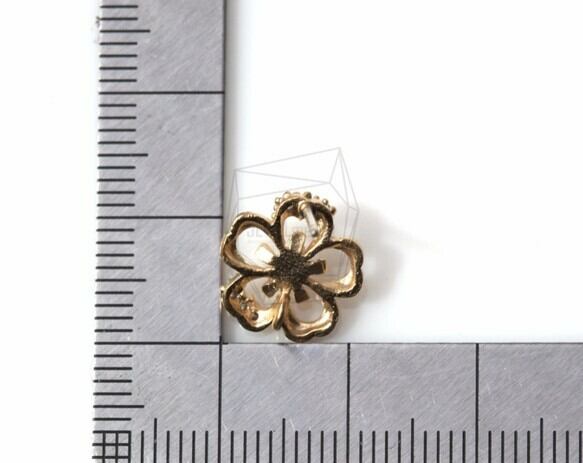 ERG-327-MG/2PCS/CZ Hibiscus Flower Earring/12mm x 12mm/Matte Gold Plated over Brass