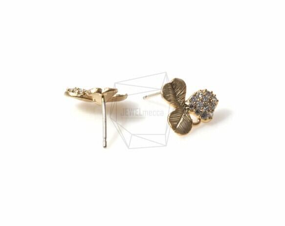 ERG-329-MG/2PCS/CZ Clover Earring/12mm x 11mm/Matte Gold Plated over Brass
