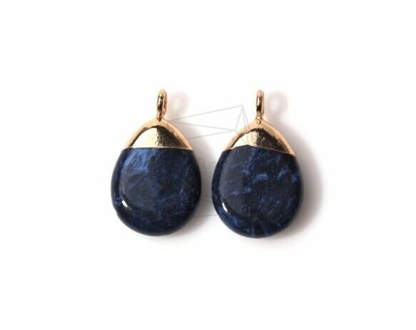 STO-039-G/2Pcs-stone Pendant/12mm x 26mm /Gold Plated over brass