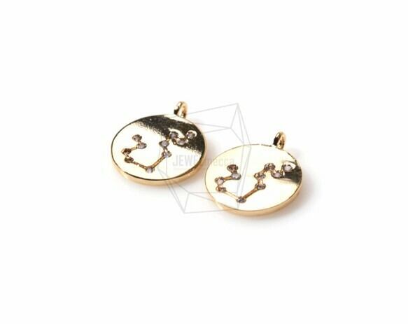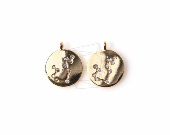 PDT-1003-G/2Pcs- Zodiac Sign Charm(Aquarius)/Constellation Disc Pendant/10mm/Gold Plated over brass