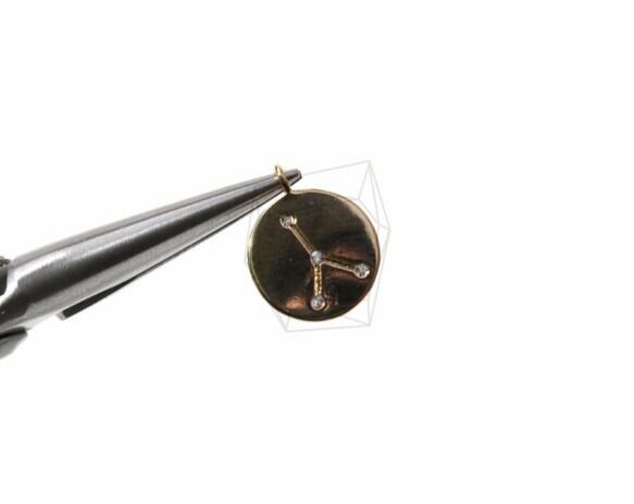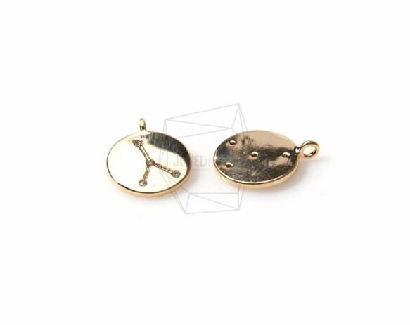 PDT-1008-G/2Pcs- Zodiac Sign Charm(Cancer)/Constellation Disc Pendant/10mm/Gold Plated over brass