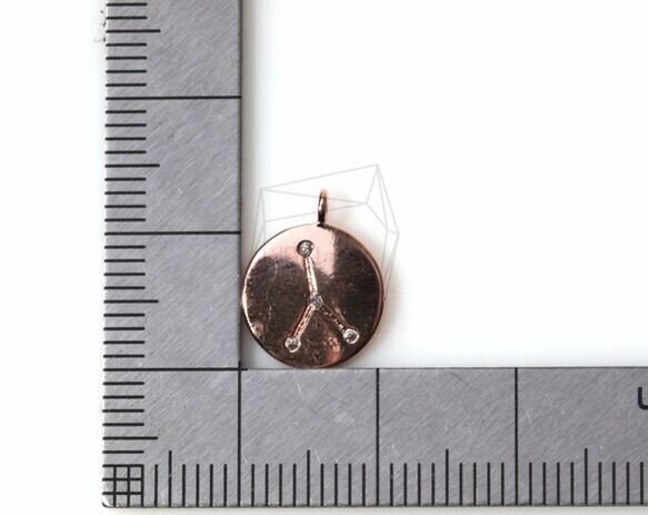 PDT-1008-P/2Pcs- Zodiac Sign Charm(Cancer)/Constellation Disc Pendant/10mm/Rose Gold Plated Brass