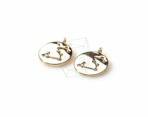 PDT-1009-G/2Pcs- Zodiac Sign Charm(Leo)/Constellation Disc Pendant/10mm/Gold Plated over brass