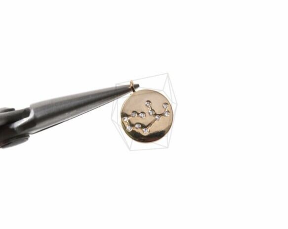 PDT-1010-G/2Pcs- Zodiac Sign Charm(Virgo)/Constellation Disc Pendant/10mm/Gold Plated over brass