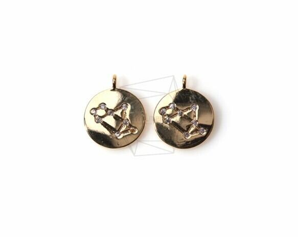 PDT-1013-G/2Pcs- Zodiac Sign Charm(Sagittarius)/Constellation Disc Pendant/10mm/Gold Plated over brass