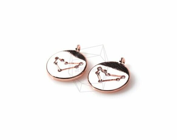 PDT-1014-P/2Pcs- Zodiac Sign Charm(Capricorn)/Constellation Disc Pendant/10mm/Rose Gold Plated Brass