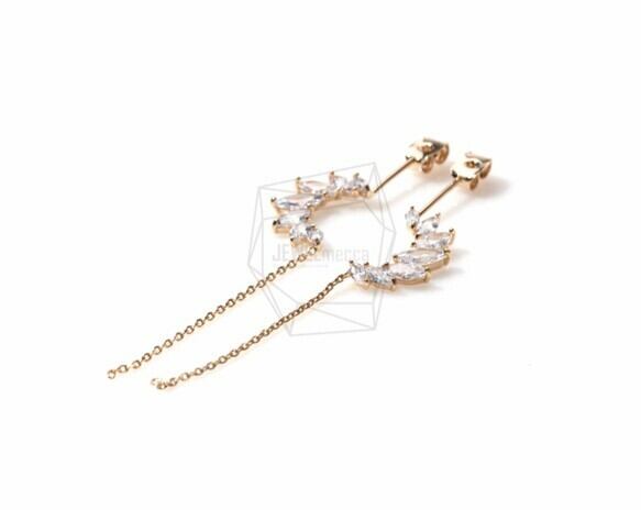 ERG-343-G/2PCS/CZ Wing Cluster Chain Earring Post/64mm x 5mm/Gold Plated over Brass