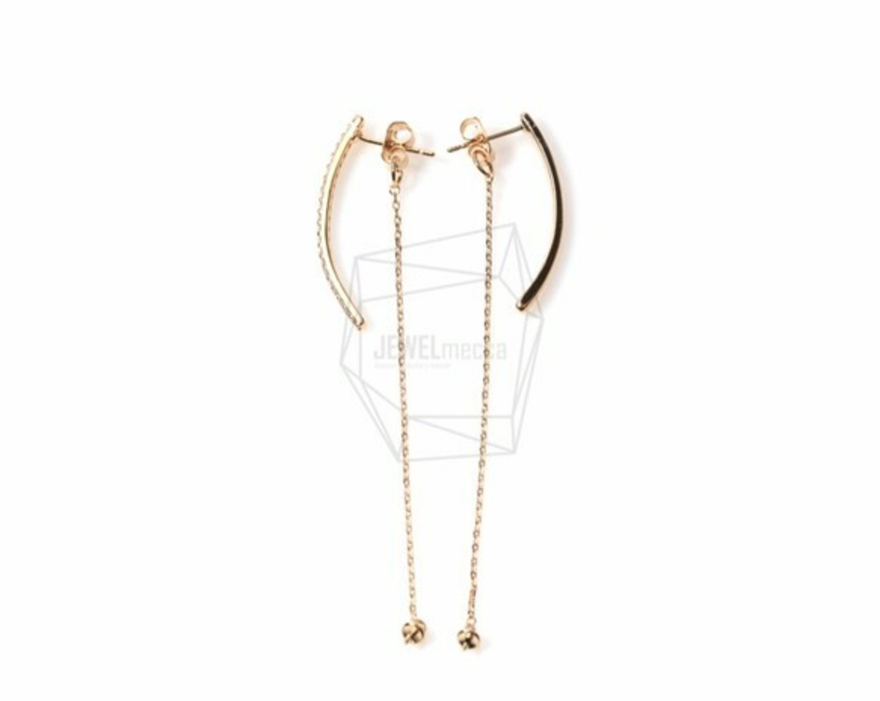 ERG-346-G/2PCS/CZ Bar Earring with Chain Drop Post/75mm x 7mm/Gold Plated over Brass