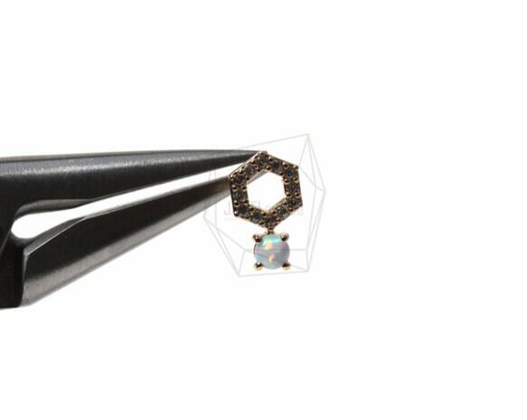 ERG-357-G/2PCS/CZ Iridescent Pentagon Earring/6mm x 10mm/Gold Plated over Brass